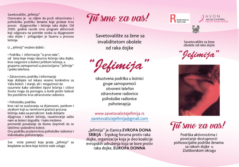 • повећање доступности психосоцијалне подршке женама са раком дојке у Златиборском округу